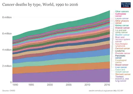 The overall impact of chemotherapy on cancer survival can be difficult to estimate, since improved cancer screening, prevention (e.g. anti-smoking campaigns), and detection all influence statistics on cancer incidence and mortality. In the United States, overall cancer incidence rates were stable from 1995 through 1999, while cancer death rates decreased steadily from 1993 through 1999.[17] Again, this likely reflects the combined impact of improved screening, prevention, and treatment. Nonetheless, cancer remains a major cause of illness and death, and conventional cytotoxic chemotherapy has proved unable to cure most cancers after they have metastasized.
