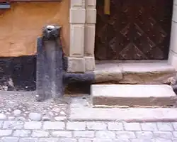 A well-known urban legend, the sewer alligator, is that of giant alligators or crocodiles residing in combined sewers, especially of major metropolitan areas. Two public sculptures in New York depict an alligator dragging a hapless victim into a manhole.[41]