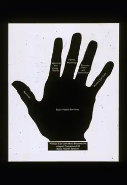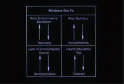 For example, in villages with endemic trachoma, the eye care health workers would educate families about the importance of sanitation and handwashing and also provide access to eye drops. In areas with high rates of blindness due to cataracts, this cadre of personnel would educate families about the cure for blindness due to cataracts with eye surgery. Changing the belief that blindness is an inevitable consequence of aging requires community eye health education about curable blindness and preventable blindness, which is still so necessary in many parts of the world. Community ophthalmology teachings include the concept of primary eye care, which has been advocated as both a stand-alone health service and a new integral component of basic health services or public health services. [4]