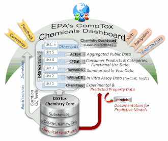 The CompTox Chemicals Dashboard is a freely accessible online database created and maintained by the U.S. Environmental Protection Agency (EPA). The database provides access to multiple types of data including physicochemical properties, environmental fate and transport, exposure, usage, in vivo toxicity, and in vitro bioassay. EPA and other scientists use the data and models contained within the dashboard to help identify chemicals that require further testing and reduce the use of animals in chemical testing. The Dashboard is also used to provide public access to information from EPA Action Plans, e.g. around perfluorinated alkylated substances.[2][3]