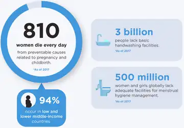 As of 2017 about 810 women die daily from preventable causes related to pregnancy and childbirth, with most occuring in low and middle-income countries.