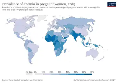 Levels of hemoglobin are lower in the third trimesters. According to the United Nations (UN) estimates, approximately half of pregnant individuals develop anemia worldwide. Anemia prevalences during pregnancy differed from 18% in developed countries to 75% in South Asia.[26]