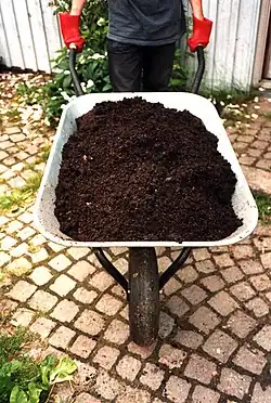 The material from composting toilets is a humus-like material, which can be suitable as a soil amendment for agriculture. Compost from residential composting toilets can be used in domestic gardens, and this is the main such use.