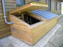 - ↑ Antos-Ketcham, Pete (2013). "Long Trail News: Quarterly of the Green Mountain Club, Fall 2013. Article titled: "Batch-Bin/Beyond-the-Bin (BTB) Composting Privies"" (PDF). Green Mountain Club. Archived from the original (PDF) on 1 February 2015. Retrieved 31 January 2015.