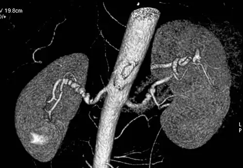 Visualization of blood flow in the renal arteries (those supplying the kidneys) in patients with high blood pressure and those suspected of having kidney disorders can be performed using CTA. Stenosis (narrowing) of a renal artery is a cause of hypertension (high blood pressure) in some patients and can be corrected. A special computerized method of viewing the images makes renal CT angiography a very accurate examination.[6]