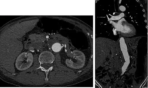 Computed tomography of the abdomen and pelvis is an application of computed tomography (CT) and is a sensitive method for diagnosis of abdominal diseases. It is used frequently to determine stage of cancer and to follow progress. It is also a useful test to investigate acute abdominal pain (especially of the lower quadrants, whereas ultrasound is the preferred first line investigation for right upper quadrant pain). Renal stones, appendicitis, pancreatitis, diverticulitis, abdominal aortic aneurysm, and bowel obstruction are conditions that are readily diagnosed and assessed with CT. CT is also the first line for detecting solid organ injury after trauma.
