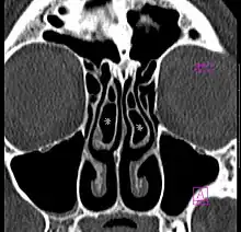 - ↑ Stallman, JS; Lobo, JN; Som, PM (Oct 2004). "The incidence of concha bullosa and its relationship to nasal septal deviation and paranasal sinus disease". American Journal of Neuroradiology. 25 (9): 1613–8. PMID 15502150.