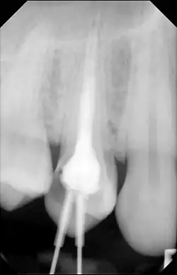 - ↑ Diana, Rasda; Widyastuti, Andina; Santosa, Pribadi (2021-01-16). "One-Visit Apexification in Management of Gutta Percha Extrusion and Condensing Osteitis: 4 Years Follow-Up". Proceedings of the 4th International Conference on Sustainable Innovation 2020–Health Science and Nursing (ICoSIHSN 2020). Vol. 33. [[[Atlantis Press]]. pp. 161–166. doi:10.2991/ahsr.k.210115.034. ISBN 978-94-6239-315-8.