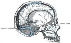 | Source | Superior sagittal sinus, straight sinus, occipital sinus |