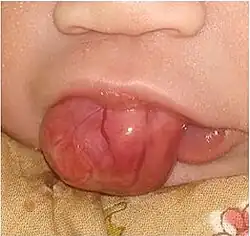 - 1 2 Kayıran SM, Buyukunal C, Ince U, Gürakan B (July 2011). "Congenital epulis of the tongue: A case report and review of the literature". JRSM Short Reports. 2 (7): 62. doi:10.1258/shorts.2011.011048. PMC 3147239. PMID 21847444.