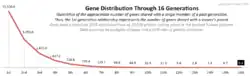 A simplistic depiction of genetic relatedness after n generations as a 2−n progression