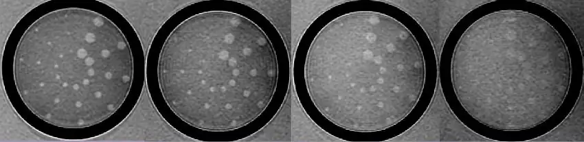 Contrast resolution is usually measured by generating a pattern from a test object that depicts how image contrast changes as the structures being imaged get smaller and closer together. The picture below shows one such set of images produced using the low contrast detectability inserts of the phantom employed in the MRI accreditation program of the American College of Radiology.