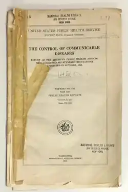 4. Marr, JS; Cathey, JT (Nov–Dec 2016). "A Century in the Life of the Control of Communicable Diseases Manual: 1917 to 2017". Journal of Public Health Management and Practice. 22 (6): 597–602. doi:10.1097/phh.0000000000000435. PMID 27682728.