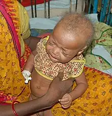 Menkes disease is a congenital disease that is a cause of copper deficiency.[3][7][19] Menkes disease is a hereditary condition caused by a defective gene involved with the metabolism of copper in the body.[7] Menkes disease involves a wide variety of symptoms including floppy muscle tone, seizures, abnormally low temperatures, and a peculiar steel color hair that feels very rough.[3][19] Menkes disease is usually a fatal disease with most children dying within the first ten years of life.[3][19]