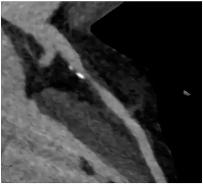 In addition to the diagnostic abilities, cardiac CTA beholds important prognostic information. Stenosis severity and extent of coronary artery disease are important prognostic indicators.[8] However, one of the unique features of cardiac CTA is the fact that it enables the visualization of the vessel wall, in a non-invasive manner. Therefore, the technique is able to identify characteristics of coronary artery disease that are associated to the development of acute coronary syndrome.[9][10]