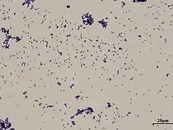 Corynebacterium xerosis is a gram-positive, rod-shaped bacterium in the genus Corynebacterium. Although it is frequently a harmless commensal organism living on the skin and in the mucous membranes, C. xerosis is also a clinically relevant opportunistic pathogen that has been attributed to many different infections in animals and humans.[1][2] However, its actual prominence in human medicine is up for debate due to early difficulties distinguishing it from other Corynebacterium species in clinical isolates.
