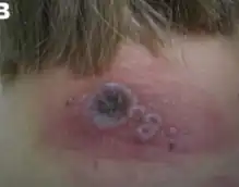 | Cowpox lesions on forearm on day 7 after onset of illness.[1] | |