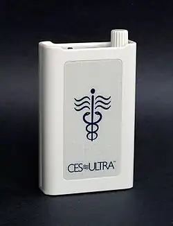 Cranial electrotherapy stimulation (CES) is a form of neurostimulation that delivers a small, pulsed, alternating current via electrodes on the head.[1] CES is used with the intention of treating a variety of conditions such as anxiety, depression and insomnia.[1] CES has been suggested as a possible treatment for headaches, fibromyalgia, smoking cessation, and opiate withdrawal,[1] but there is little evidence of effectiveness for many of these conditions and the evidence for use in acute depression is not sufficient to justify it.[2]