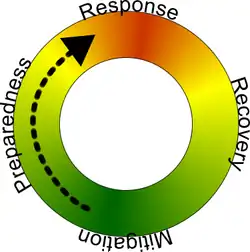 A graphic representation of the four phases in emergency management.