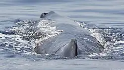 Organisms such as whales and birds have different crown structures and species use them in different situations. Sperm whales have their blowholes situated asymmetrically on the crown of the head to breathe, causing a flattened head shape.[6] In bird anatomy, the crown is the top of the head, or more specifically the zone from the frons, or forehead, extending posteriorly to the occiput and laterally on both sides to the temples. The upper part of the head, including frons, crown, and occiput, is called the pileum.[7] A bird with a crest covering the pileum is described as "pileated" such as the pileated woodpecker.[8] The range of feathers that make up the crest determines the bird's emotions and courtship behaviors.[9] For instance, bird species such as the northern cardinal move the crest intensely to signify dominance and communication.[6]