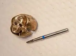 Gold shell crown sectioned using a tungsten carbide bur