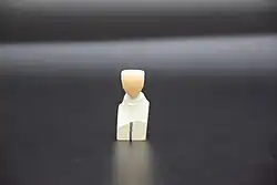 In dentistry, a crown or a dental cap is a type of dental restoration that completely caps or encircles a tooth or dental implant. A crown may be needed when a large dental cavity threatens the health of a tooth. Some dentists will also finish root canal treatment by covering the exposed tooth with a crown.[1] A crown is typically bonded to the tooth by dental cement. They can be made from various materials, which are usually fabricated using indirect methods. Crowns are used to improve the strength or appearance of teeth and to halt deterioration. While beneficial to dental health, the procedure and materials can be costly.