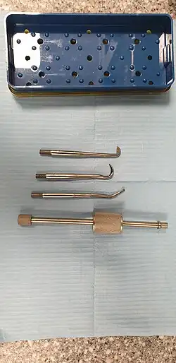 There is evidence of gold dental prosthesis dating back to the Etruscans.[59] Ancient Roman dentists also adopted these tools.[60]