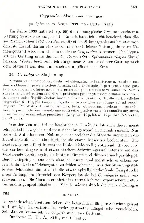 - ↑ Skuja, H. (1948): Taxonomie des Phytoplanktons einiger Seen in Uppland, Schweden. 39 Taf. – Symbolae Botanicae Upsalienses. 9, 3: 1–399, Uppsala.