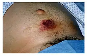 {{cite journal}}: CS1 maint: unflagged free DOI (link) - ↑ Bosmann M, Schreiner O, Galle PR (April 2009). "Coexistence of Cullen's and Grey Turner's signs in acute pancreatitis". Am. J. Med. 122 (4): 333–4. doi:10.1016/j.amjmed.2008.08.032. PMID 19332225.