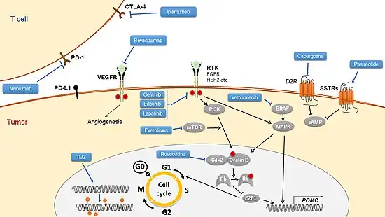 - ↑ 13.0 13.1 Yamamoto, Masaaki; Nakao, Takahiro; Ogawa, Wataru; Fukuoka, Hidenori (June 16, 2021). "Aggressive Cushing's Disease: Molecular Pathology and Its Therapeutic Approach". Frontiers in Endocrinology. 12. doi:10.3389/fendo.2021.650791. ISSN 1664-2392. Archived from the original on June 2, 2024. Retrieved June 2, 2024.