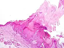 {{cite journal}}: CS1 maint: unflagged free DOI (link) - ↑ Yu, R.C.H.; Pryce, D.W.; MacFarlane, A.W.; Stewart, T.W. (1991). "A histopathological study of 643 cutaneous horns". British Journal of Dermatology. 124 (5): 449–52. doi:10.1111/j.1365-2133.1991.tb00624.x. PMID 2039721.