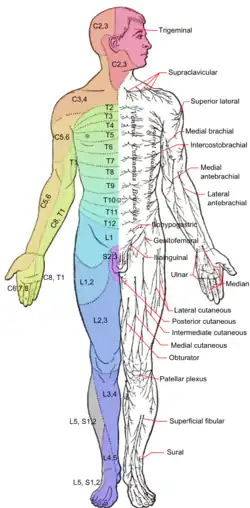 Dermatomes and major cutaneous nerves.