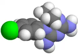 Cycloguanil is a dihydrofolate reductase inhibitor,[1] and is a metabolite of the antimalarial drug proguanil; its formation in vivo has been thought to be primarily responsible for the antimalarial activity of proguanil.[2] However, more recent work has indicated that, while proguanil is synergistic with the drug atovaquone (as in the combination Malarone), cycloguanil is in fact antagonistic to the effects of atovaquone, suggesting that, unlike cycloguanil, proguanil may have an alternative mechanism of antimalarial action besides dihydrofolate reductase inhibition.[3]