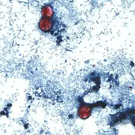 Cyclosporiasis is a disease caused by infection with Cyclospora cayetanensis, a pathogenic protozoan transmitted by feces or feces-contaminated food and water.[1] Cyclosporiasis was virtually unknown in developed countries until awareness increased due to several outbreaks linked with fecally contaminated imported produce. C. cayetanensis has since emerged as an endemic cause of diarrheal disease in tropical countries and food-borne infections in developed nations.[2]
