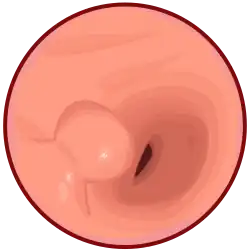 When it occurs in the colon, it is termed colitis cystica profunda. Colitis cystica profunda is benign, but it may mimic a tumor.[2] When it occurs in the rectum it may be termed colitis cystica profunda, or termed proctitis cystica profunda. Some consider this synonymous, or closely related to solitary rectal ulcer syndrome, a consequence of internal rectal intussusception.