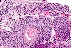 - ↑ Moussaoui, A el; Dakir, M; Sarf, I; Aboutaieb, R; Zamiati, S; Benjelloun, S (1997). "Cystitis cystica glandularis. A study of 2 cases". Annales d'urologie (in French). 31 (4): 195–198. PMID 9412342.