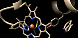 - ↑ Kang X, Carey J (November 1999). "Role of heme in structural organization of cytochrome c probed by semisynthesis". Biochemistry. 38 (48): 15944–51. doi:10.1021/bi9919089. PMID 10625461.