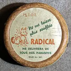 Commercial product of Ciba-Geigy Néocide (powder box, 50 g) containing 10% DDT, made in France.