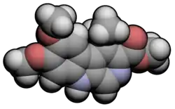 DMCM (methyl 6,7-dimethoxy-4-ethyl-β-carboline-3-carboxylate) is a drug from the β-carboline family that induces anxiety and convulsions by acting as a negative allosteric modulator of GABAA receptors — functionally opposite to benzodiazepines and related drugs which are positive allosteric modulators — and is used in scientific research for these properties to test new anxiolytic and anticonvulsant medications, respectively.[1][2][3][4] It has also been shown to produce analgesic effects in animals, which is thought to be the drug's induced panic reducing the perception of pain.[5]