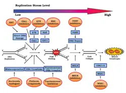 - 1 2 Zhang J, Dai Q, Park D, Deng X (August 2016). "Targeting DNA Replication Stress for Cancer Therapy". Genes. 7 (8): 51. doi:10.3390/genes7080051. PMC 4999839. PMID 27548226.