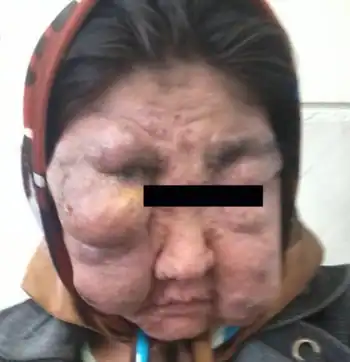Beyond these, many other recurrent infections have been observed, including recurrent fungal infections and recurrent viral infections (including molluscum contagiosum, herpes simplex, and herpes zoster), recurrent upper respiratory infection (including Streptococcus pneumoniae, Haemophilus influenzae, respiratory syncytial virus, and adenovirus), recurrent sinusitis, recurrent otitis media, mastoiditis, pneumonia, bronchitis with bronchiectasis, osteomyelitis, candidiasis, meningitis (caused by cryptococcus or H. influenzae), pericarditis, salmonella enteritis, and giardiasis. Other dermatologic problems include squamous-cell carcinoma/dysplasia (vulvar, anal, and facial). Immune problems are also common, including autoimmune hemolytic anemia, severe allergies (both food and environmental), asthma, and reactive airway disease. The nervous system may also be affected; observed conditions in DOCK8 deficient people include hemiplegia, ischemic stroke, subarachnoid hemorrhage, and facial paralysis. Vascular complications are common, including aortic aneurysm, cerebral aneurysm, vessel occlusion and underperfusion, and leukocytoclastic vasculitis.[1][2][3][4]