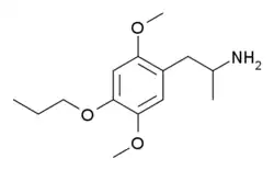 - ↑ Shulgin AT, Dyer DC (December 1975). "Psychotomimetic phenylisopropylamines. 5. 4-Alkyl-2,5-dimethoxyphenylisopropylamines". J Med Chem. 18 (12): 1201–1204. doi:10.1021/jm00246a006. PMID 1195275.