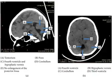 9. 9.0 9.1 9.2 9.3 9.4 Bosemani, Thangamadhan; Orman, Gunes; Boltshauser, Eugen; Tekes, Aylin; Huisman, Thierry A. G. M.; Poretti, Andrea (2015-01-01). "Congenital Abnormalities of the Posterior Fossa". RadioGraphics. 35 (1): 200–220. doi:10.1148/rg.351140038. ISSN 0271-5333. PMID 25590398.