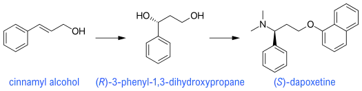 - ↑ Venkatesan K, Srinivasan KV (2008). "Stereoselective synthesis of (S)-dapoxetine starting from trans-cinnamyl alcohol". Arkivoc. 2008 (16): 302–310. doi:10.3998/ark.5550190.0009.g28. hdl:2027/spo.5550190.0009.g28.