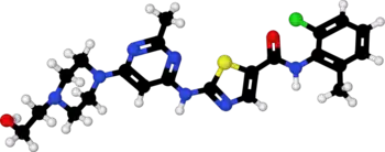 - ↑ Tokarski JS, Newitt JA, Chang CY, Cheng JD, Wittekind M, Kiefer SE, et al. (June 2006). "The structure of Dasatinib (BMS-354825) bound to activated ABL kinase domain elucidates its inhibitory activity against imatinib-resistant ABL mutants". Cancer Research. 66 (11): 5790–7. doi:10.1158/0008-5472.CAN-05-4187. PMID 16740718.