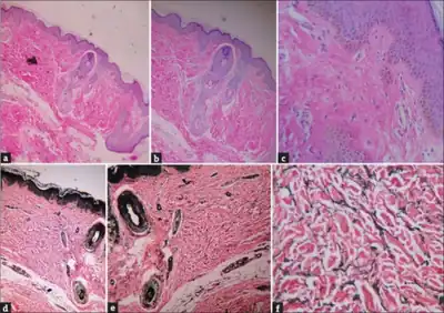 - ↑ Fischer-Zirnsak B, Escande-Beillard N, Ganesh J, Tan YX, Al Bughaili M, Lin AE, et al. (September 2015). "Recurrent De Novo Mutations Affecting Residue Arg138 of Pyrroline-5-Carboxylate Synthase Cause a Progeroid Form of Autosomal-Dominant Cutis Laxa". American Journal of Human Genetics. 97 (3): 483–92. doi:10.1016/j.ajhg.2015.08.001. PMC 4564990. PMID 26320891.