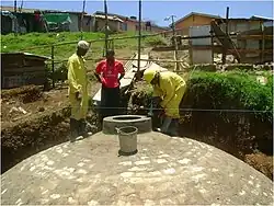 In under-developed population centres where no infrastructure is available, is difficult to provide sustainable sanitation measures; e.g. pit latrines/septic tanks need periodic cleansing, usually executed by vacuum trucks, which have to access the latrine and need a basic road for this purpose.[14] Fecal sludge management deals with the organization and implementation of this practice in a sustainable way, including collection, transport, treatment and disposal/reuse of faecal sludge from pit latrines and septic tanks.[15]