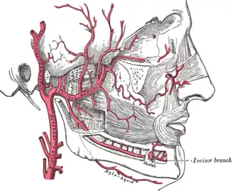 It is a branch of the (mandibular part of) the maxillary artery.[1] It often arises in common with the anterior tympanic artery.