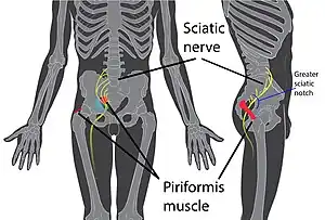 - ↑ Jawish RM, Assoum HA, Khamis CF (2010). "Anatomical, clinical and electrical observations in piriformis syndrome". Journal of Orthopaedic Surgery and Research. 5: 3. doi:10.1186/1749-799X-5-3. PMC 2828977. PMID 20180984.