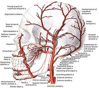 - ↑ Suwa, Fumihiko; Tominaga, Saisuke; Kumagai, Hideo (1978). "On the Posterior Deep Temporal Artery of the Dog". Okajimas Folia Anatomica Japonica. 55 (5): 255–263. doi:10.2535/ofaj1936.55.5_255. PMID 750948.